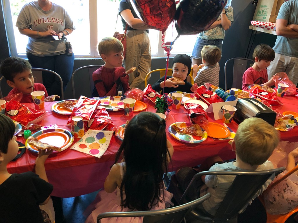 There was still some breath holding to go before the inevitable pop up back onto the board of truth. That night Cartter had nightmares, because Matt had apparently told him there were ghosts in the mansion’s attic; tension rose as we prepared to go to the springtime baby’s party at the arcade and fun park the next morning; and the knowledge of a later meet up with my friend and the need to perform was near the front of my mind. Turns out that the venue was actually an amazing idea by Danyelle. Not that we will ever do it again, but as far as awkward little kid birthday parties go, this was the best one I ever went to. Everyone was free to roam the whole time, we kept the pizza and cupcake eating gathering in the little side room to a minimum, and people were generally happy and very friendly. Go figure. Still, after navigating the arcade scene, sitting through the Super Mario Brothers movie (which was the height of mediocrity), and listening to my tired kids whine on the car ride home, I was ready to escape. I texted Matt “free.” He sent me a picture of our mutual high school friend Ben, and I said “What are you two doing? I need to get the hell out of here.”
