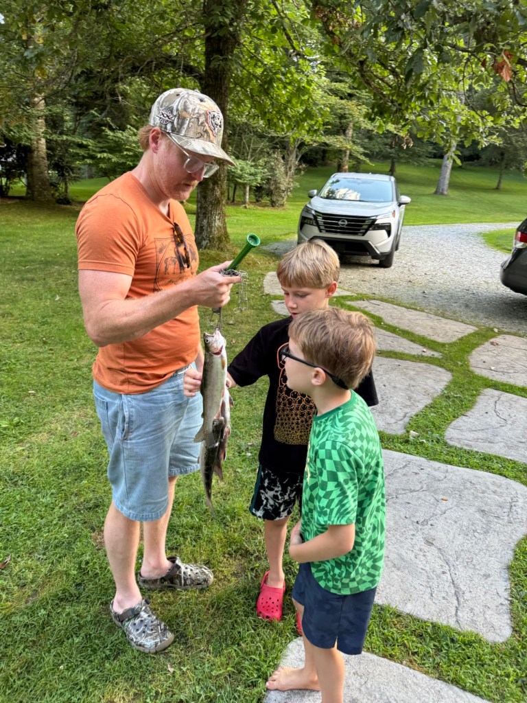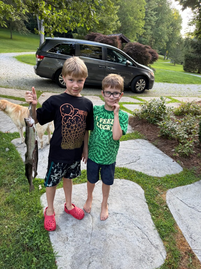 I enjoy being a hero to Cartter and Scotty in Sapphire, the one who takes them on the boat, unsnarls their lines, and gets them hooked into big fish. I play the role as naturally as I grow whiskers from my face during a visit, unperturbed by any sense of urgency to get ahead in my work life, never once thinking to shush the boys as they alternately observe my manliness and practice their own. My friend Matt flew down from Chicago to join us on this most recent trip, and the boys studied us intently as we caught, cleaned, and consumed trout from the lakes, all while we talked incessantly and with little regard for their fragile innocence.