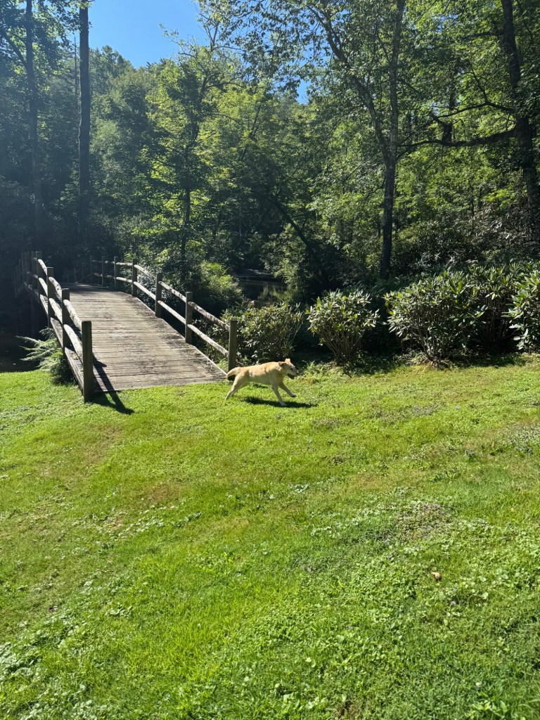 Scotty also proved himself on the trails and in the lake. On a hike up Sassafrass, he zoomed ahead of everyone and reached the summit minutes before anyone else. He was always the most eager to take a dip too. Once, after I swapped him out for Cartter in the little plastic boat on the Upper Lake, he stripped down and swam to the swim dock and back on his own. A light rain was beginning to fall, and it was a short, cold swim. Another time, he ran to the main house to relieve his bowels while Cartter and I were swimming, and then suddenly reappeared running down the path past the dam, ripping his clothes off and streaking to the edge of the dock before plunging in. He’s apparently a big fan of skinny dipping. He got the idea when we were walking to the boathouse one day and Danyelle offered, “Do you guys wanna change into your suits or go in your undies?”