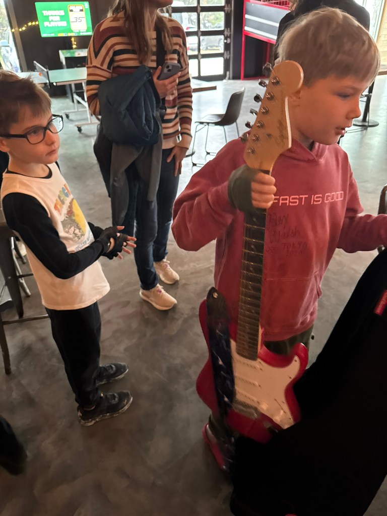 More than anything, I was proud of the way both boys carried themselves. Cartter was vocal about his nerves ahead of time, but he shook them off and composed himself, seemingly embracing the pre-performance adrenaline. Scotty was nonchalant about everything; he even mugged for the camera from behind his keyboard when he caught his mother filming, but he never missed a beat. I loved seeing them so comfortable and confident on stage. Cartter wore his pink hoodie signed by Olympic swimmer Alex Walsh and his orange crocs. Scotty went more punk rock, donning a “tacocat” tank top over long sleeves and a pair of fingerless black gloves. Neither of them let the moment get too big for them. They looked so relaxed on stage.