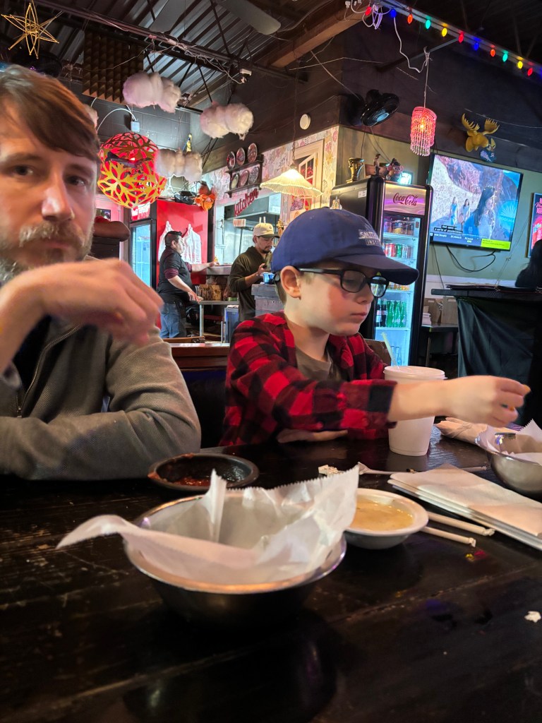 I sat next to him later that night at Santi’s, a Mexican restaurant on the way out to the beach, and I enjoyed periodically repeating to him, “Let’s be a dad and a son,” a refrain which produced a little smirk from beneath the blue Smithsonian Institute ballcap he’d picked out for the occasion.