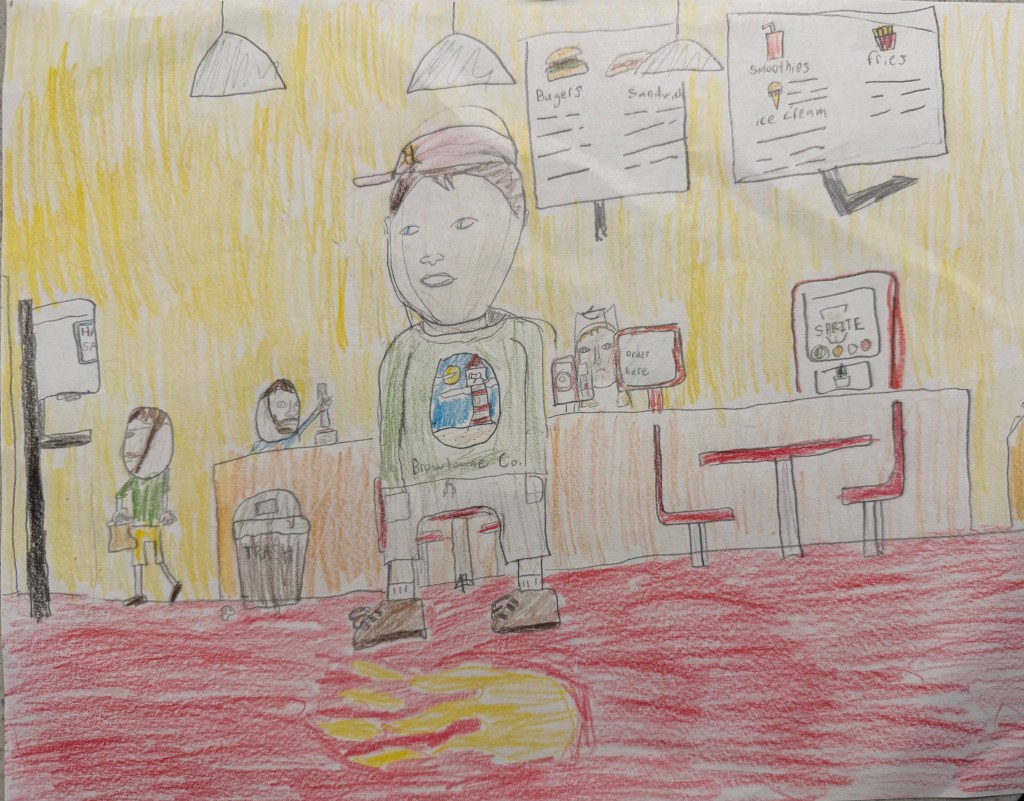 At this point I noticed that Scotty’s timing and delivery was impeccable. The pace of the setup, the tiny pause before the punchline, the accompanying expression of “Get it?” Everything was perfect. So I started listening. There was another joke about some large animals in a freezer, and then another about artists. “What’s Bob Ross plus Vincent Van Gough?” he asked. “Bob Ross minus what is Vincent Van Gough? . . . What minus Vincent Van Gough is Bob Ross?” From his tone Scotty let it be known that the missing “what” was very obvious. I didn’t get it, and he looked up at me and said with a slight nod and an upturn of his hand, “Pablo Picasso.” It was total nonsense, perfectly delivered, and the second telling gave Danyelle and me both a hearty laugh.