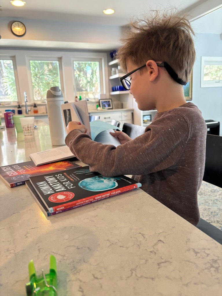 His Roosevelt project done, the reading teacher assigned him and his classmates with the task of picking out another nonfiction book, only this one could not be a biography or any sort of narrative. She wanted something with text-book-like features – glossaries and information boxes. Aunt Betsey helpfully provided an anatomy for kids book. Scotty said he couldn’t wait to get to the last chapter, the one on the reproductive systems, because there were pictures of the insides of a penis and a vagina. I was a little worried what he might glean, but it seemed to amount to about nothing. “I wish it talked more about poop,” he said in the end.